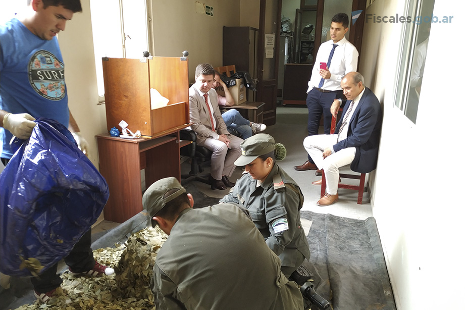 Con una muestra fotográfica y reproducción de videos, el fiscal interrogó a los testigos, quienes confirmaron que en la camioneta había 17 bultos o bolsas de plástico repletas de hojas de coca, que a pedido del fiscal se hallaban en la sala de audiencia, por lo que confirmaron el secuestro.