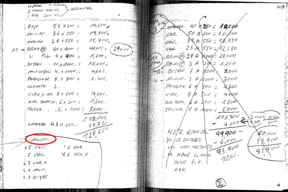 La fiscalía secuestró cuadernos con anotaciones claves sobre cantidades de aves, especies, precios y hasta la contabilidad de los ejemplares muertos. Foto: Sede Fiscal Descentralizada San Nicolás