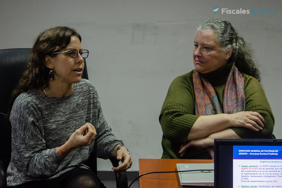 En una primera parte se realizaron presentaciones sobre los avances en el tema y, en ese marco, la titular de la DGPG, Romina Pzellinsky, compartió las experiencias de la institución con registros no binarios de la identidad de género.