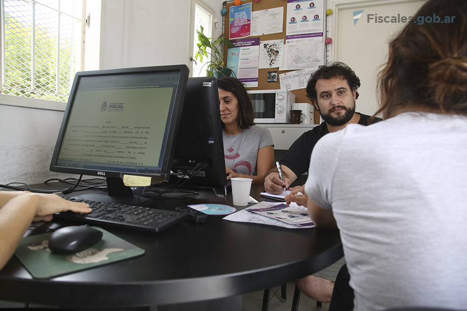 Durante la toma de la denuncia, el psicólogo dirige la entrevista a partir de una guía de pautas semi estructurada y contiene a la persona denunciante en caso de resultar necesario. En caso de observarse lesiones físicas de reciente data, se le consulta a la persona si ha sido atendida en algún centro de salud. En caso negativo, se le indica que al finalizar la denuncia se le entregará un oficio de derivación a uno de los Centros de Salud y Acción Comunitaria del barrio para que una médica legista constate las lesiones.