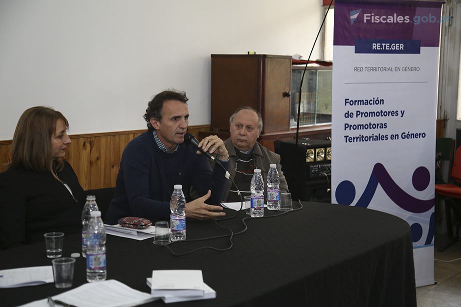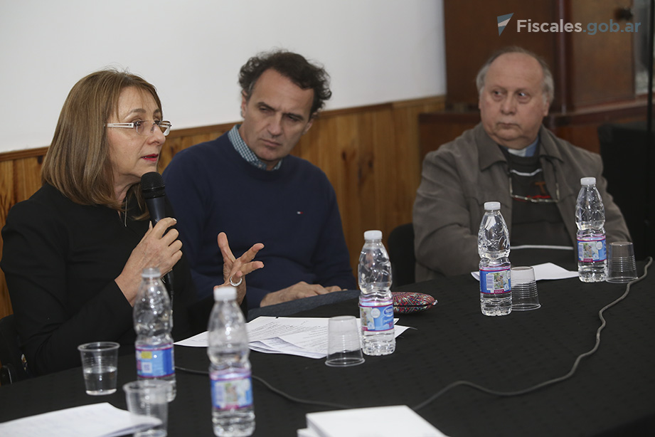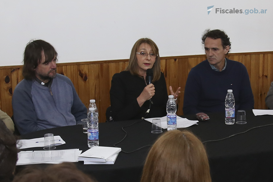 La titular del Ministerio Público compartió el panel con el intendente de San Martín, Gabriel Katopodis; los sacerdotes José "Pepe" Di Paola y Domingo "Mingo" Rain (quien además fue el anfitrión de la ceremonia); la titular de la Unidad Fiscal Especializada en Violencia contra las Mujeres (UFEM), Mariela Labozzetta; y el decano del Instituto de Altos Estudios Sociales (IDAES) de la Universidad Nacional de San Martín (UNSAM), Alexandre Roig, con quien además la procuradora firmó un convenio de colaboración. Más temprano, el mismo salón de la Parroquia Inmaculada Concepción de José León Suarez había sido sede de uno de los encuentros de capacitación en género del que participaron más de 50 mujeres, quienes serán operadoras en sus barrios en situaciones de violencia de género.