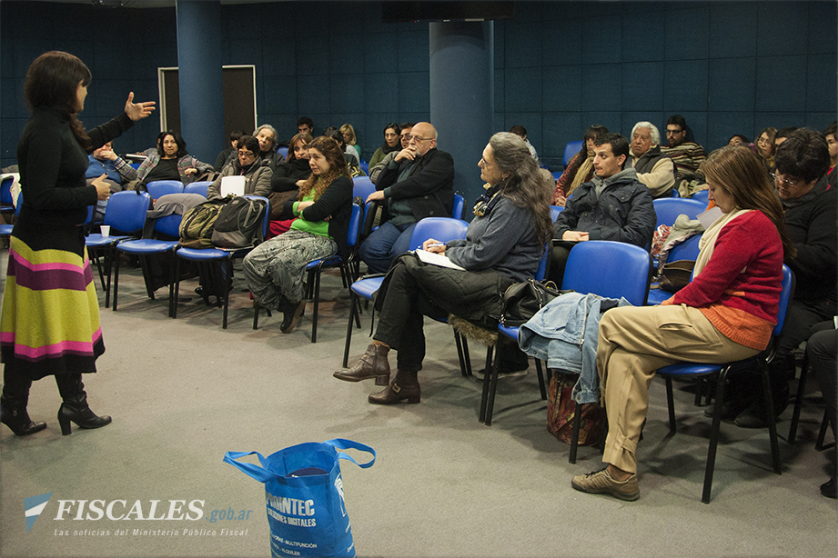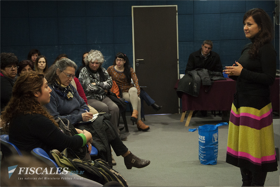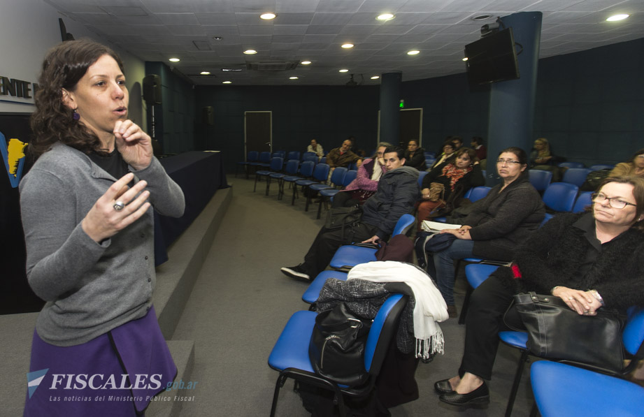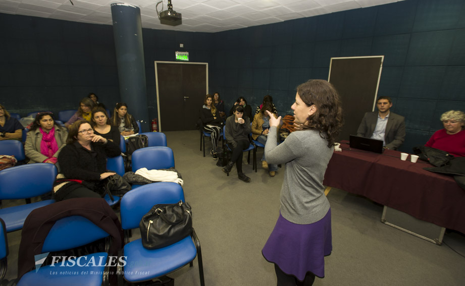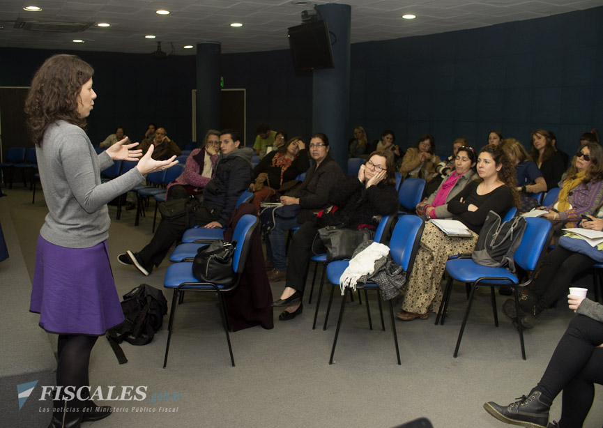 Durante la primera jornada, María Paloma Ochoa presentó el modo en que se encuentra conformado el sistema de administración de justicia (justicia federal, justicia nacional, justicia provincial), inscribió institucionalmente al Programa sobre Políticas de Género y explicitó sus funciones y posibilidades de intervención.