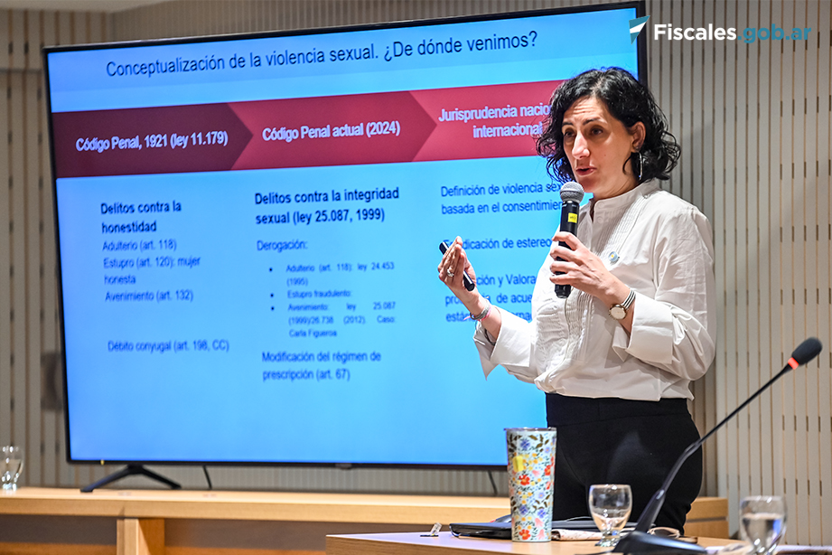Por la tarde, la psicóloga del equipo de UFEM, Natalia López, brindó una exposición sobre las características de las declaraciones de las víctimas de esta clase de delitos y las pautas de actuación de las fiscalías en esa materia.