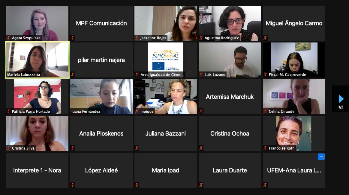 Durante la jornada expusieron Agata Szypulska, experta del equipo de violencia del Instituto Europeo para la Igualdad de Género, y Françoise Roth, consultora de ONU Mujeres. También participaron fiscalas especializadas de los ministerios públicos de Andorra, Colombia, Ecuador, España, Honduras, México, Paraguay, Panamá y Portugal y representantes del programa EUROsociAL+ de la Unión Europea.