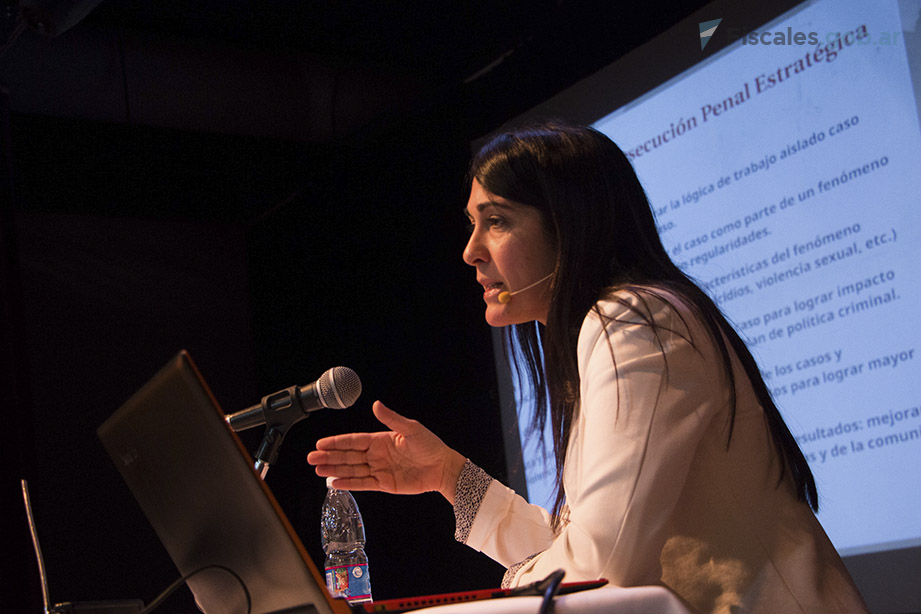 Labozzetta centró su disertación en la necesidad de desarrollar estrategias de persecución penal y líneas de política criminal integrales para la investigación y sanción de los delitos que integran el fenómeno de violencia de género, del mismo modo que este abordaje es propuesto para la persecución del crimen organizado. Expuso además la dinámica de trabajo de la UFEM bajo ese paradigma: “UFEM orienta su funcionamiento bajo el paradigma de la persecución penal estratégica. Este enfoque apunta a superar la actuación tradicional del MPF aislada y fragmentada caso por caso, que resulta sumamente ineficaz para perseguir delitos complejos. En su lugar, concibe los casos como manifestaciones de fenómenos criminales que tienen ciertas regularidades, porque responden a una lógica de mercado (por ejemplo, los robos de automotores, la trata de personas, el tráfico de drogas, etc.) o a patrones socio-culturales, como la violencia de género".
