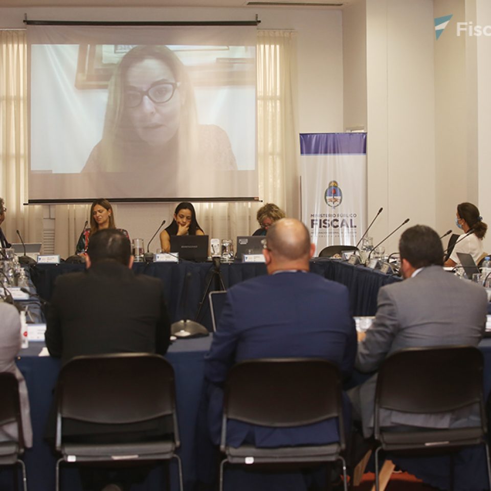 IMG_3804 ← Previous Next → Foto: Matías Pellón / Fiscales.gob.ar Macarena Arroyo, de España, intervino por videoconferencia.