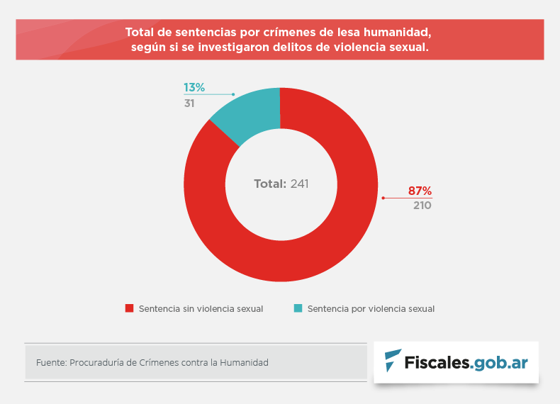 Según el registro de la Procuraduría de Crímenes Contra la Humanidad, a cargo de la fiscal Ángeles Ramos, se verifica que a marzo de 2020 sólo el 13% de las sentencias dictadas abordan estos delitos de manera autónoma.