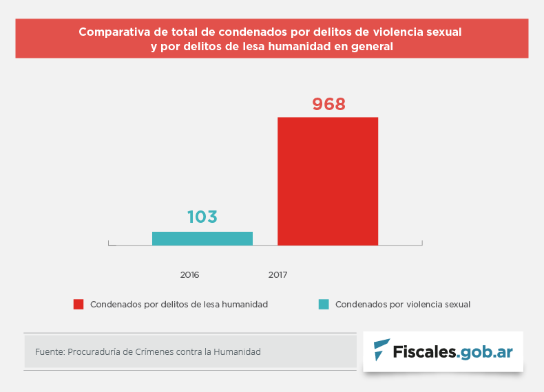 De un total de 968 personas condenadas por crímenes de lesa humanidad, 103 fueron responsabilizadas por delitos sexuales.