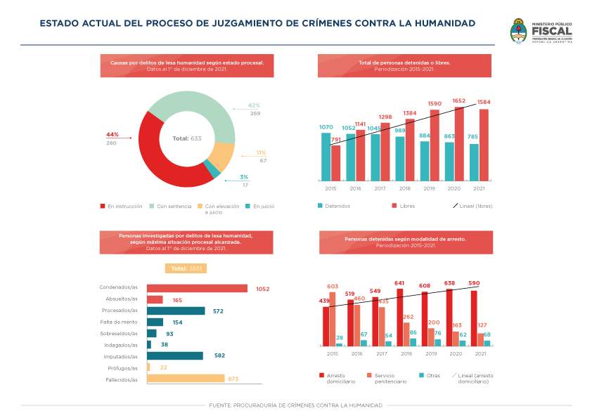 A quince años de la reapertura de los procesos, se dictaron 269 sentencias y 1052 personas fueron condenas mientras que 165 resultaron absueltas