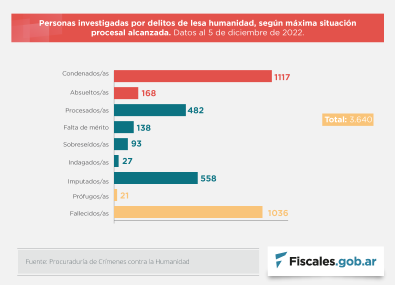 Cerca de las 300 sentencias por crímenes de lesa humanidad, las personas condenadas suman 1117 y las absueltas 168