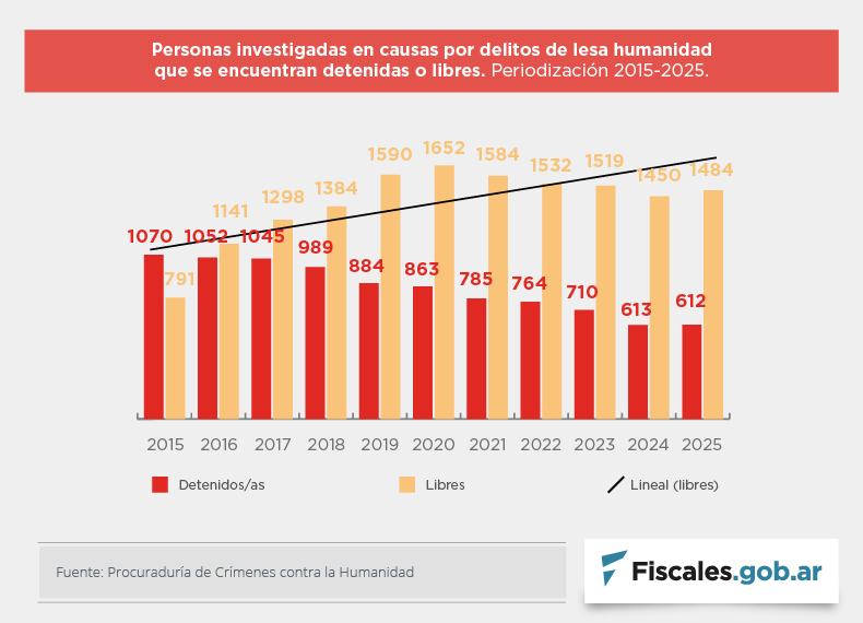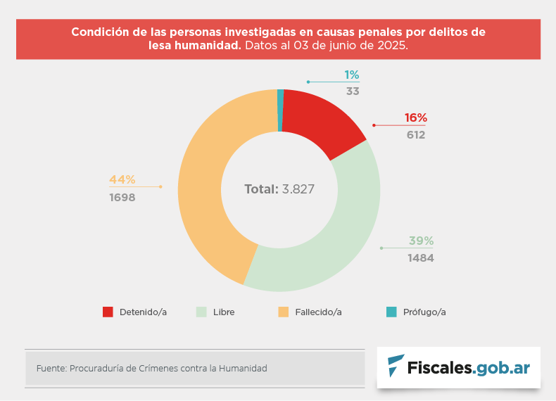 Las estadísticas, con datos actualizados al 3 de junio, fueron construidas por la procuraduría especializada con base en la información proporcionada por las fiscalías federales y unidades fiscales especializadas que intervienen en los procesos por crímenes de lesa humanidad en todo el país.