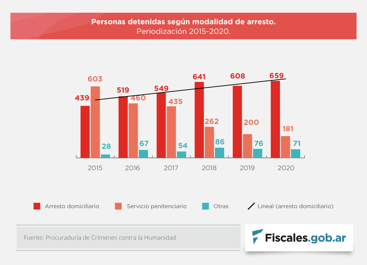 Por otra parte, el relevamiento de la procuraduría también refleja el aumento de la cantidad de prisiones domiciliarias que se suscitaron durante este año, incremento que se debe, en una pequeña porción, al contexto de pandemia y a la entrada en vigencia del Decreto 260/20, a partir del cual se registraron solicitudes de morigeración de la modalidad de prisión. En comparación a junio, cuando la cifra era de 649, el número actual marca un leve ascenso: actualmente son 659 las personas que están bajo esta modalidad de arresto.