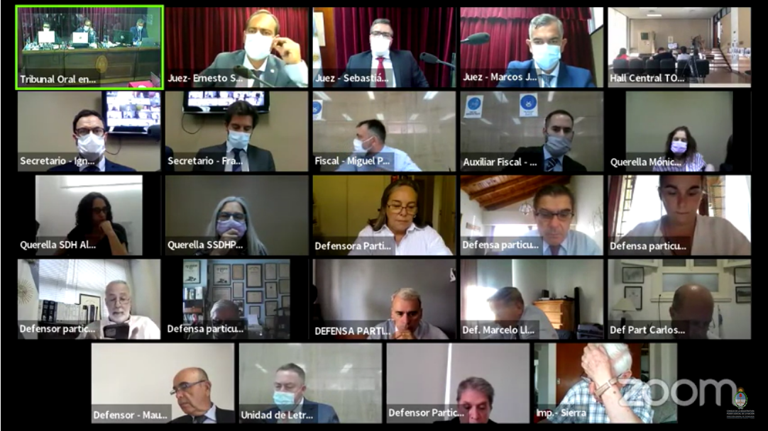 Pasadas las 9.30, la audiencia, que se hizo de forma semi presencial y con público en la sala, tuvo una breve exposición inicial por parte del tribunal en la que explicó la modalidad del juicio y los requisitos necesarios para el desarrollo del debate. A las 10.00, luego de distintos problemas de conexión por parte de algunos imputados, los jueces Ernesto Pedro Francisco Sebastián, Sebastián Luis Foglia y Marcos Javier Aguerrido dieron inicio al juicio, que comenzó con la lectura de la síntesis de la acusación por parte del MPF.