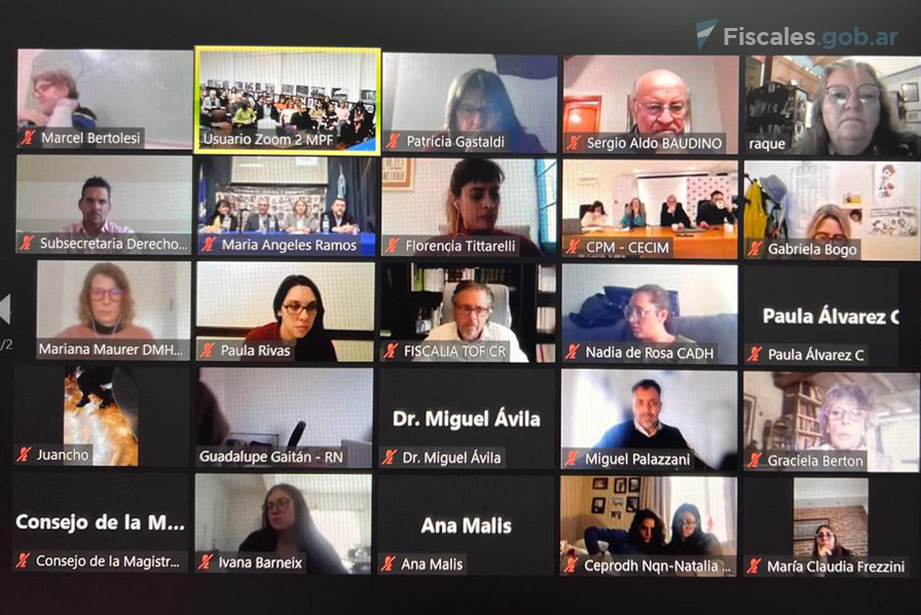 Participaron de la reunión, en representación del Ministerio Público Fiscal, la titular de la Procuraduría de Crímenes contra la Humanidad, María Angeles Ramos, las y los fiscales Miguel Palazzani, Horacio Azzolín, Teodoro W. Nürnberg, María Claudia Frezzini, Iara J. Silvestre, Julio Cesar Zárate, Lucas Colla, Marcelo A. Rapoport y Marcos J. Escandell, y las/os auxiliares fiscales Paula Molini, María Laura Ramírez, Pablo Fermento, Federico Iparraguirre y Matías Eidem.