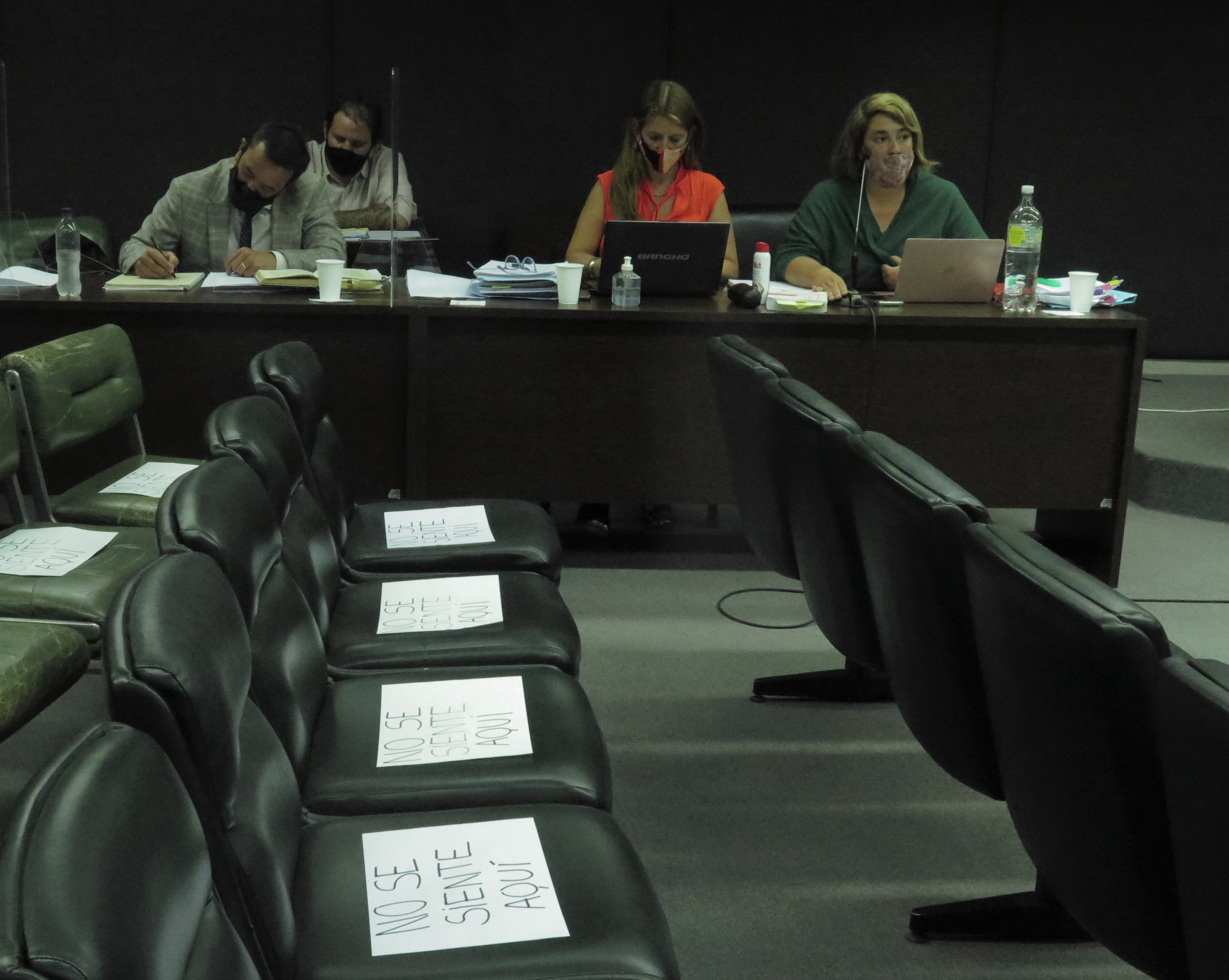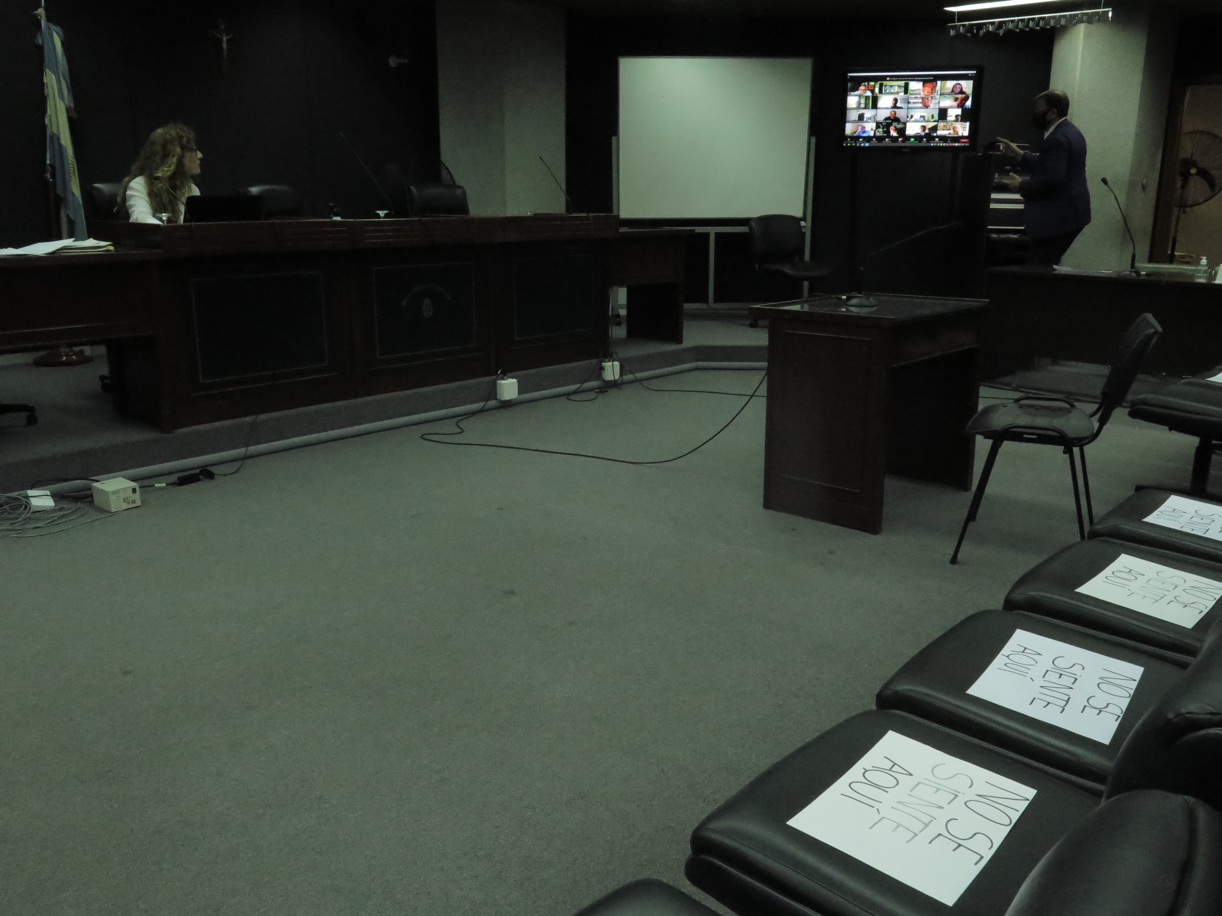El Tribunal está integrado por la jueza María Claudia Morgese Martín y los jueces Héctor Sagretti y Fernando Machado Pelloni, quienes encabezaron el debate de manera remota, al igual que defensores e imputados. En representación del Ministerio Público Fiscal interviene la fiscala Laura Mazzaferri y como auxiliares fiscales, María Eugenia Montero y Julio Darmandrail. Dado el contexto de pandemia, las audiencias conjugarán presencialidad y virtualidad.