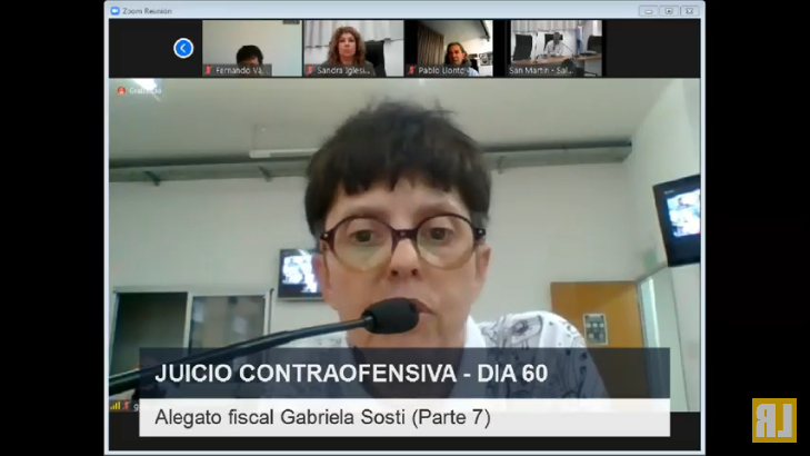 La auxiliar fiscal Gabriela Sosti solicitó este jueves al Tribunal Oral en lo Criminal Federal Nº4 de San Martín que condene a prisión perpetua como coautores del delito de genocidio "en los diversos modos tipificados en el Código Penal de la Nación" para las conductas de privación ilegal de la libertad, aplicación de tormentos, homicidio y allanamiento ilegal, a los seis militares que llegaron acusados al juicio por los crímenes cometidos contra 94 militantes de la organización Montoneros durante la denominada "Contraofensiva", en los años 1979 y 1980.