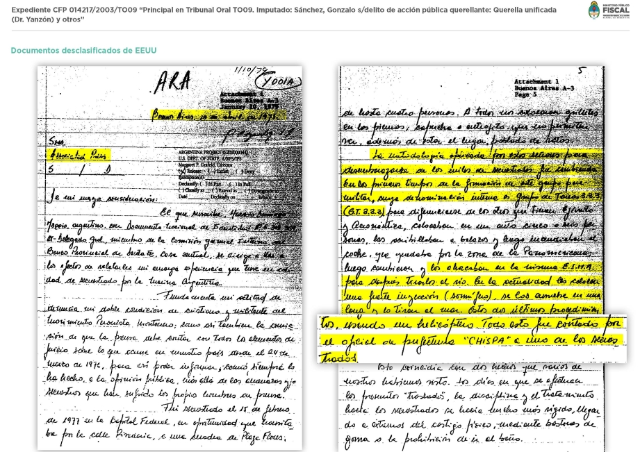 Documento desclasificado. Foto: Unidad de Asistencia para causas por Violaciones a los Derechos Humanos durante el Terrorismo de Estado