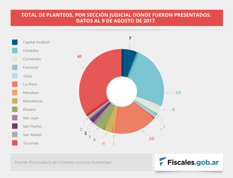 Más del 76 por ciento de todas esas solicitudes, unas 90, se concentraron en las jurisdicciones federales de Tucumán (34,7 por ciento), Córdoba (24,5 por ciento) y La Plata (16,9 por ciento).