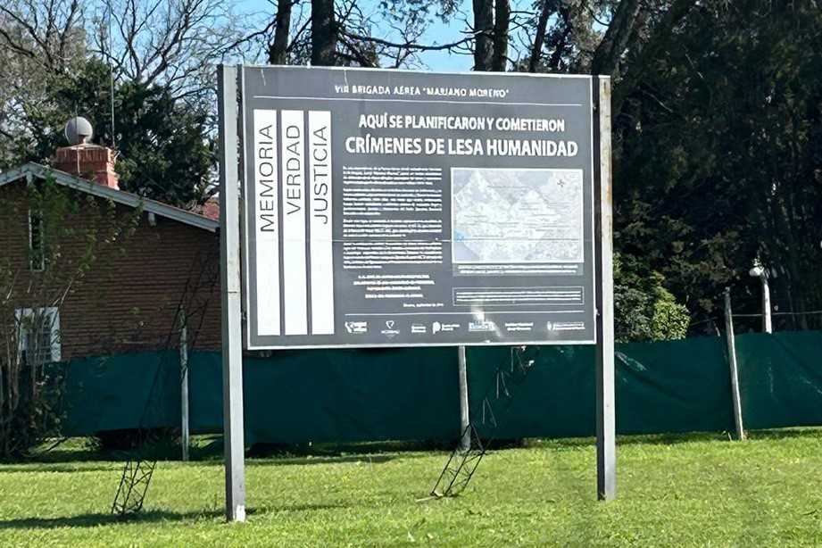 El cartel que identifica la VIII Brigada Aérea de Moreno como un centro clandestino de detención. Foto: Unidad de Asistencia para Causas por Violaciones a los Derechos Humanos durante el Terrorismo de Estado.