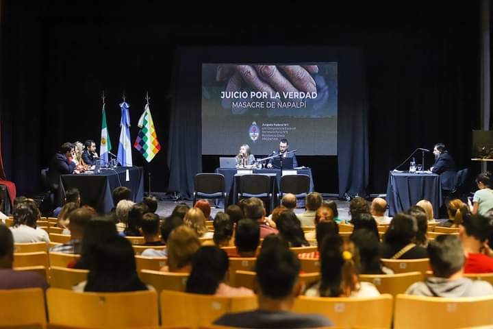 En el Auditorio de la Casa de las Culturas, el Juzgado Federal N°1 de Resistencia continuó ayer y hoy con la recepción de los testimonios en el marco del proceso por averiguación de verdad de la Masacre de Napalpí, que abarca los crímenes perpetrados por el Estado en 1924 contra integrantes de pueblos originarios y campesinos en el entonces territorio nacional del Chaco. En el debate interviene la Unidad Fiscal de Derechos Humanos de esa jurisdicción, integrada por los fiscales generales Federico Carniel y Carlos Amad, el fiscal federal Patricio Sabadini y el fiscal ad hoc Diego Vigay.