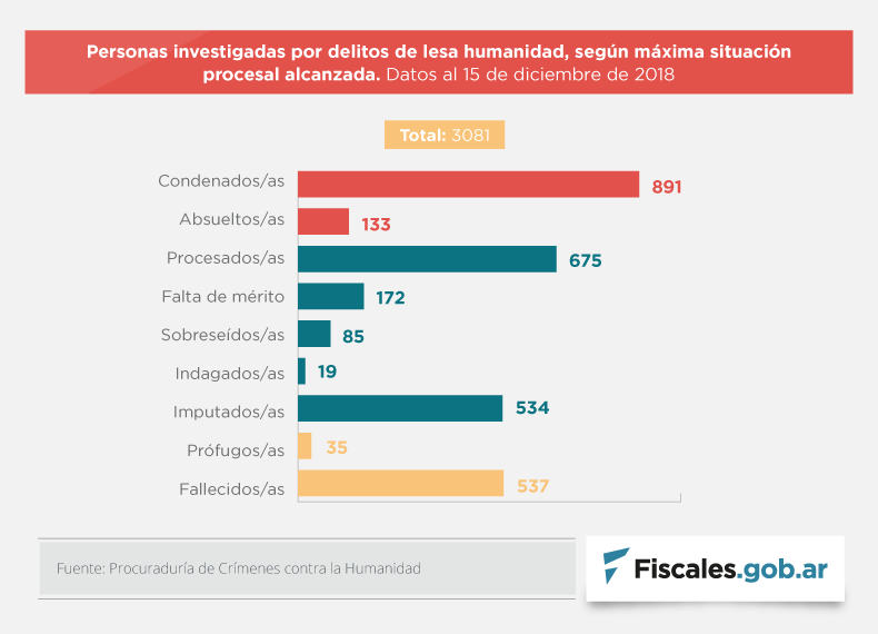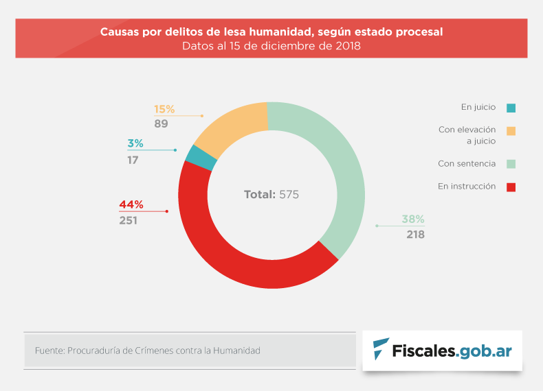 El diagnóstico elaborado por la Procuraduría de Crímenes contra la Humanidad (PCCH), a cargo de la fiscal federal María Ángeles Ramos, producido a partir de la información remitida por las fiscalías y Unidades fiscales de todo el país, destaca que en 2017 se había detectado un aumento en el ritmo con el que se dictaban sentencias de juicio. El análisis de los datos correspondientes a 2018 indica que comenzó a detenerse esa reactivación. Este aspecto se combina con las persistentes demoras en diferentes instancias del proceso, debido a las dificultades para conformar los Tribunales intervinientes o la actividad recursiva de las partes que produce dilaciones en la tramitación.