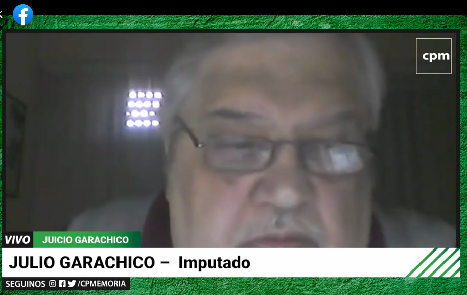 Garachico se negó a prestar declaración indagatoria y dijo que se remitía a su defensa formulada durante la instrucción de la causa, en la que se había declarado inocente. El acta con aquellos dichos fue leída a continuación de la negativa del acusado.