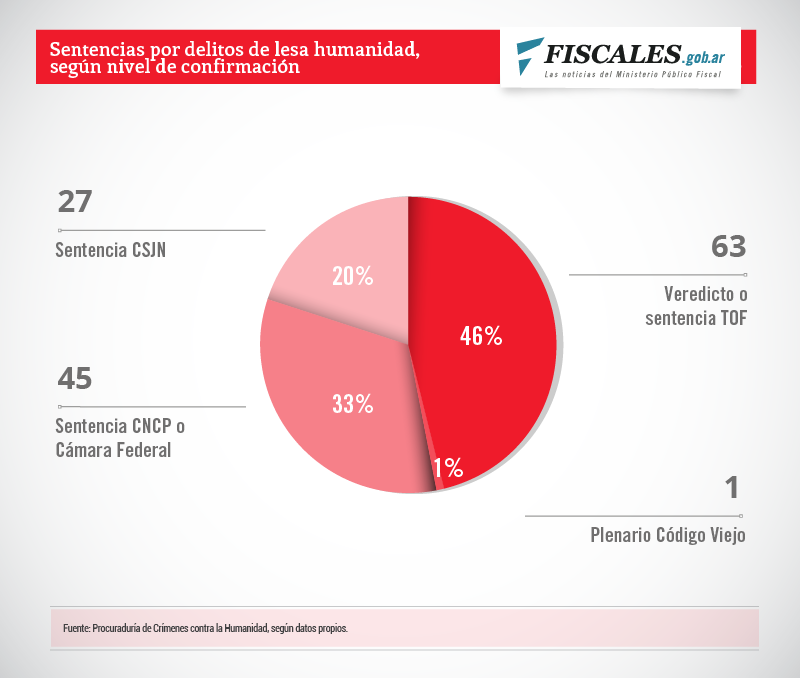 Las cifras son el resultado del relevamiento actualizado de la Procuraduría de Crímenes contra la Humanidad, a cargo del fiscal general Jorge Auat y con la coordinación de Carolina Varsky, en base a los informes remitidos por los fiscales de todo el país que intervienen en estos procesos.