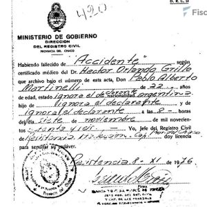 El certificado de defunción fraguado indica que la muerte fue en un "accidente". Documento remitido por la Unidad Fiscal de Derechos Humanos de Resistencia.