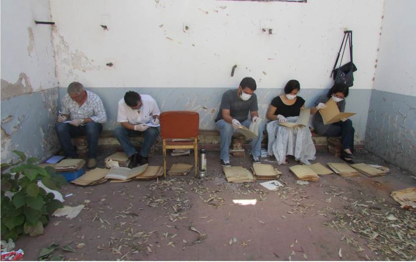 El grupo de investigadores consultó los documentos en esa sede de la fuerza de seguridad bajo la custodia de un Oficial de Justicia -la guarda está a cargo del Juzgado Federal local- que garantizó la legalidad del relevamiento. Esas tareas fueron llevadas a cabo a la intemperie para minimizar probables afectaciones a la salud de los trabajadores, en un patio, sin sillas ni mesas y "rodeados de hojas secas y palomas muertas".