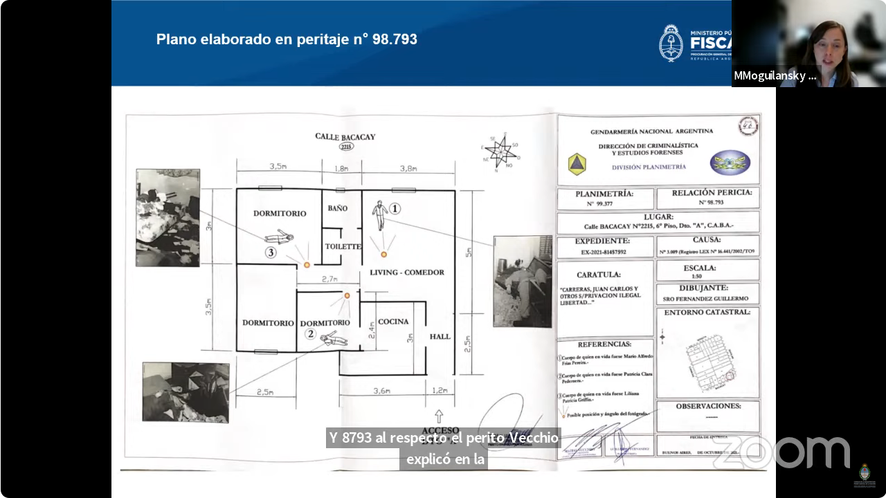 Moguilansky abrió la exposición. Señaló que la fiscalía consideraba acreditado que un grupo operativo del Departamento Táctico de la SSF "integrado por 14 personas fuertemente armadas" se dirigió al edificio Bacacay "con el objetivo de allanar ilegalmente la vivienda y secuestrar a sus habitantes, quienes habían sido identificados como integrantes de la organización Montoneros".