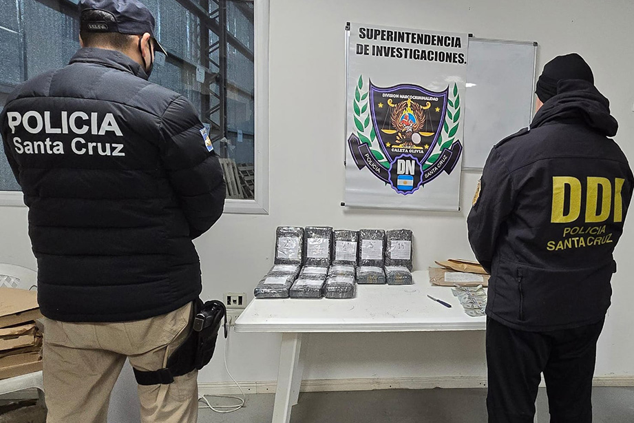 Como resultado de las medidas, la División de Narcocriminalidad de Caleta Olivia secuestró más de 14 kilos de cocaína —el pesaje exacto arrojó 14.011,5 gramos—, acondicionados en 14 bultos ocultos debajo del gabinete del camión. También se incautó una pistola de gas comprimido dentro de la cabina.