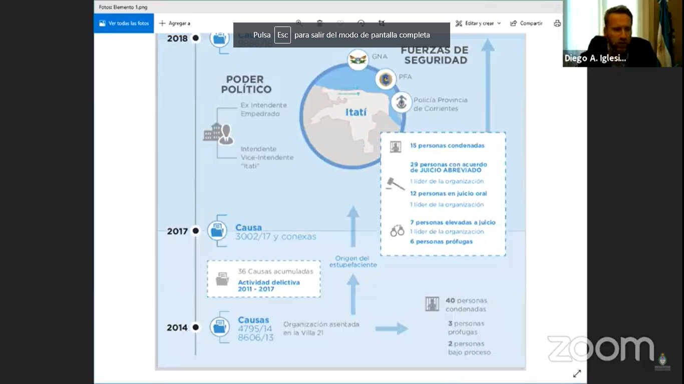 En la audiencia de ayer, realizada a traves de la plataforma virtual Zoom, el fiscal Iglesias sostuvo que "es necesario remarcar que en este macro-proceso, como lo hemos definido a lo largo de este debate, se discuten hechos que datan de los años 2011, 2014 a 2017, que se enmarcan en un contexto de una asociación criminal con permanencia en el tiempo durante lapsos temporales entre cada una de las causas".