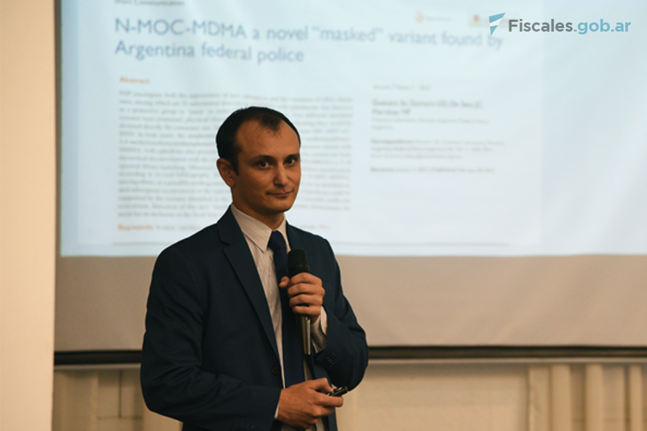 En tanto, el coordinador técnico-científico del laboratorio químico de la Policía Federal Argentina, principal Juan de la Cruz De Seta, expuso en el panel sobre drogas sintéticas y NSP, análisis químicos y problemáticas forenses. Por su parte, el jefe de sección de Aseguramiento de la Calidad de la Dirección de Criminalística y Estudios Forenses de la Gendarmería Nacional, primer alférez Martín Cabral, disertó acerca de las drogas sintéticas, las NSP, los métodos de ocultamiento y el protocolo de análisis.