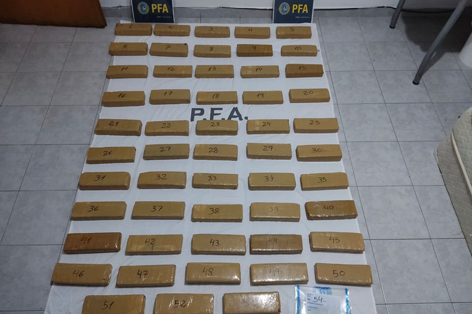 Los 53 panes de marihuana con casi 40 kilos de esa sustancia secuestrados a la organización el 19 de febrero. Foto: Policía Federal