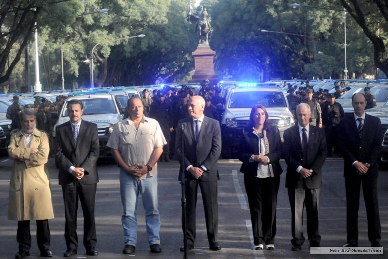 Tras la reunión, el fiscal participó del acto en el que fueron incorporadas 100 unidades móviles de Gendarmería Nacinal y 500 nuevos policías para la prevención de delitos en Rosario (foto), en la que también estuvo presente la intendenta local, Mónica Fein, y jefes policiales locales y de la Gendarmería.
