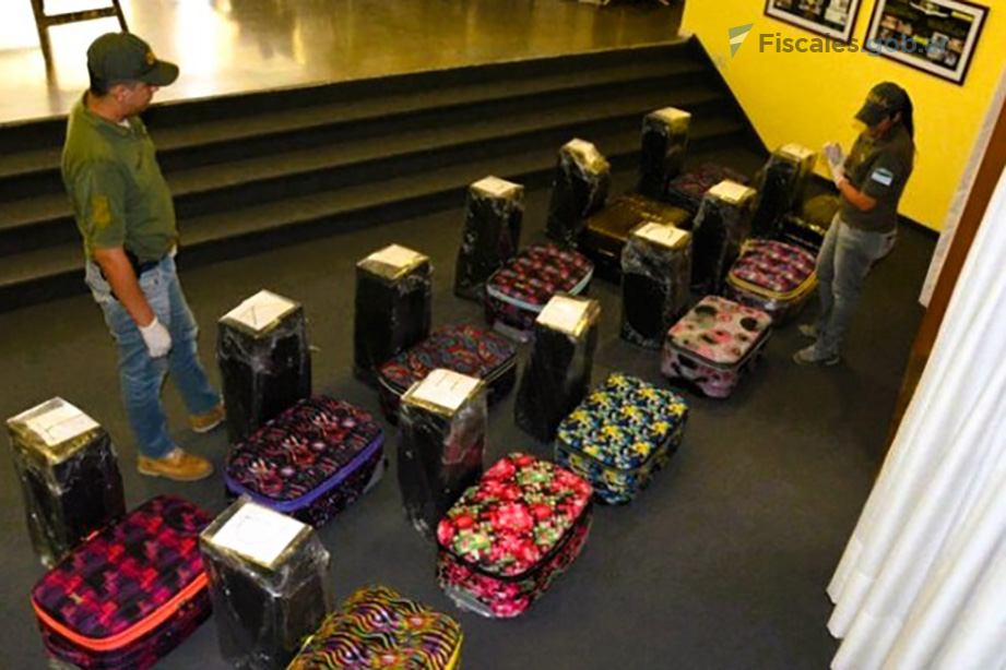 Con el propósito de hacer una entrega controlada, personal de Gendarmería Nacional reemplazó los 360 paquetes de cocaína que había en las valijas por la misma cantidad de kilos de harina, a la espera de que los responsables de la maniobra criminal retiraran ese equipaje para enviarlo a Rusia.