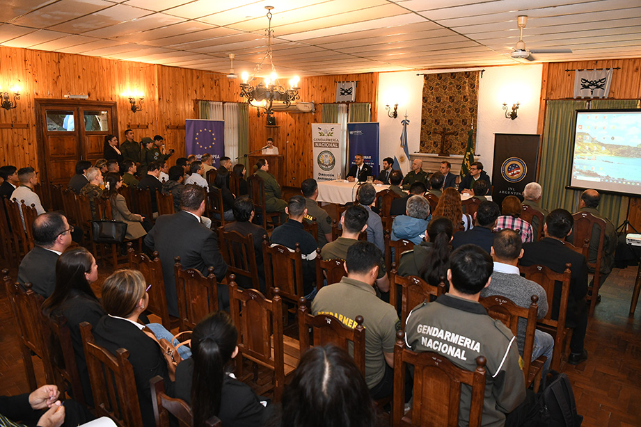 Por la mañana, las palabras de bienvenida fueron brindadas por el jefe de la Gendarmería Nacional, el comandante general Claudio Brilloni, y por el subsecretario Cichello del Ministerio de Seguridad Nacional. En el panel apertura también estuvieron García Sigman de la UNODC; Navas de la UE; y el fiscal Zurueta, titular de la Unidad Fiscal Jujuy.