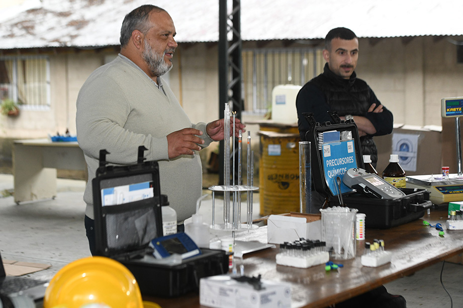 Por la tarde, y para cerrar el evento, se realizó un ejercicio práctico en el que los fiscales de los tres países, personal de Gendarmería Nacional y Policía de Seguridad Aeroportuaria (PSA) participaron junto a los inspectores de fiscalización del Ministerio de Seguridad, de una inspección en un depósito de precursores químicos, incluyendo la utilización de espectómetros de masas en el campo.