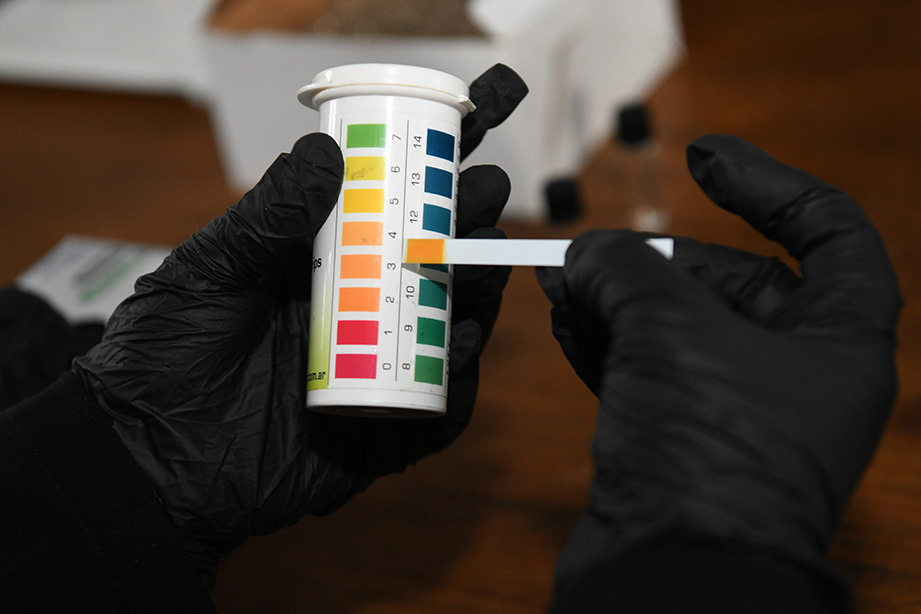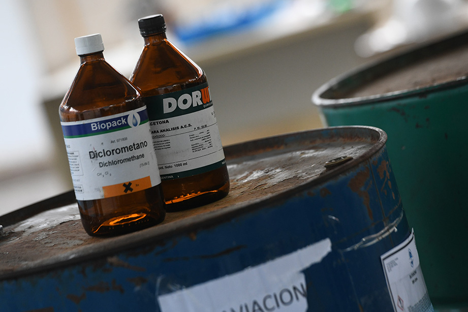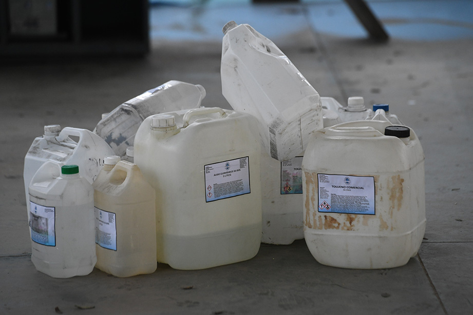 El ejercicio práctico en el que los fiscales participaron junto a los inspectores de fiscalización del Ministerio de Seguridad, de una inspección en un depósito de precursores químicos. Foto: M. Pellón