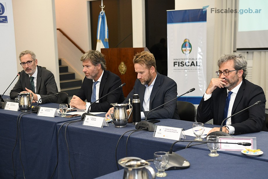 De la presentación participaron el titular de la PROCUNAR, Diego Iglesias, el teniente fiscal de la Fiscalía Especial Antidroga de España y coordinador de la Red de Fiscales Antidrogas de Iberoamérica, Ignacio De Lucas Martín, el presidente de la Asociación Internacional de Fiscales, Juan Bautista Mahiques y el representante nacional de España en EUROJUST, José de la Mata Amaya.