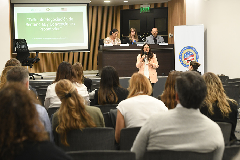 En tanto, ayer por la tarde, se desarrolló el “Taller de Negociación de Sentencia y Convenciones Probatorias”, organizado por la Asociación de Magistrados y funcionarios de la Justicia Nacional (AMFJN), la INL y la UNODC destinado a auxiliares fiscales y funcionarios del MPF del fuero Criminal y Correccional Federal de la CABA y del fuero Penal Económico y a defensores oficiales del Ministerio Público de la Defensa.