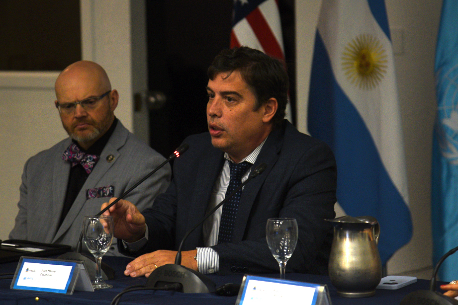 La apertura del encuentro estuvo a cargo del titular de la Secretaría de Disciplinaria y Técnica de la Procuración General de la Nación y cotitular de la UNISA, Juan Manuel Casanovas, quien estuvo acompañado por la coordinadora de esa oficina, Carla Di Gangi, y de la experta penal del Programa de Reforma de Justicia de la UNODC, Leticia Risco.
