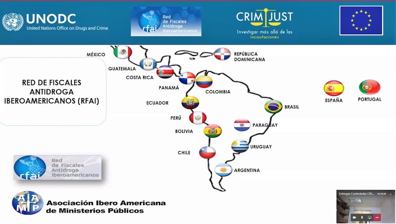 El curso “Promoción de la Cooperación en Materia de Entrega Vigilada para Hacer Frente al Tráfico Transnacional de Drogas” se desarrolló del 18 al 21 de mayo bajo modalidad virtual, con participantes de Argentina, Bolivia y Uruguay y dictado por expertos de ocho países de la Red de Fiscales Antidrogas (RFAI) de la Asociación Iberoamericana de Ministerios Públicos (AIAMP). El encuentro estuvo organizado por la RFAI –que es coordinada por la Fiscalía Antidrogas española y la Procuraduría de Narcocriminalidad (PROCUNAR) del MPF- y el Proyecto CRIMJUST de la Oficina de las Naciones Unidas contra la Droga y el Delito (UNODC).