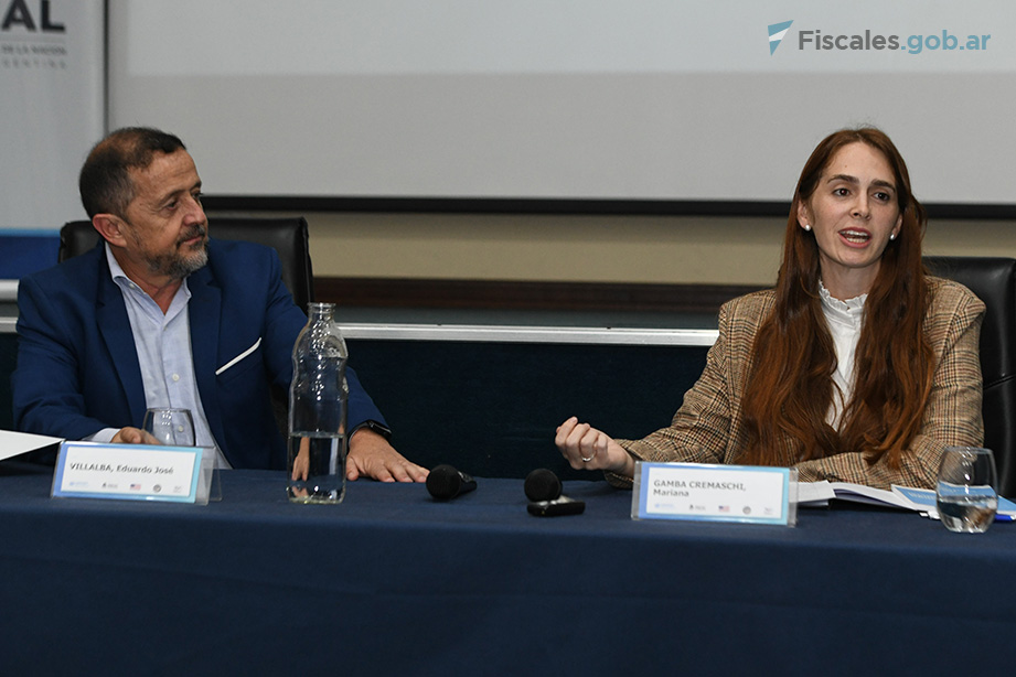 Posteriormente, el fiscal general coordinador de Distrito Salta, Eduardo Villalba, y la auxiliar fiscal de la PROCUNAR NOA, Mariana Gamba Cremaschi, hicieron un análisis de casos de corrupción asociada al tráfico ilícito de drogas en los distintos ámbitos en el sistema acusatorio y contaron casos prácticos a los que se enfrentan en su jurisdicción.