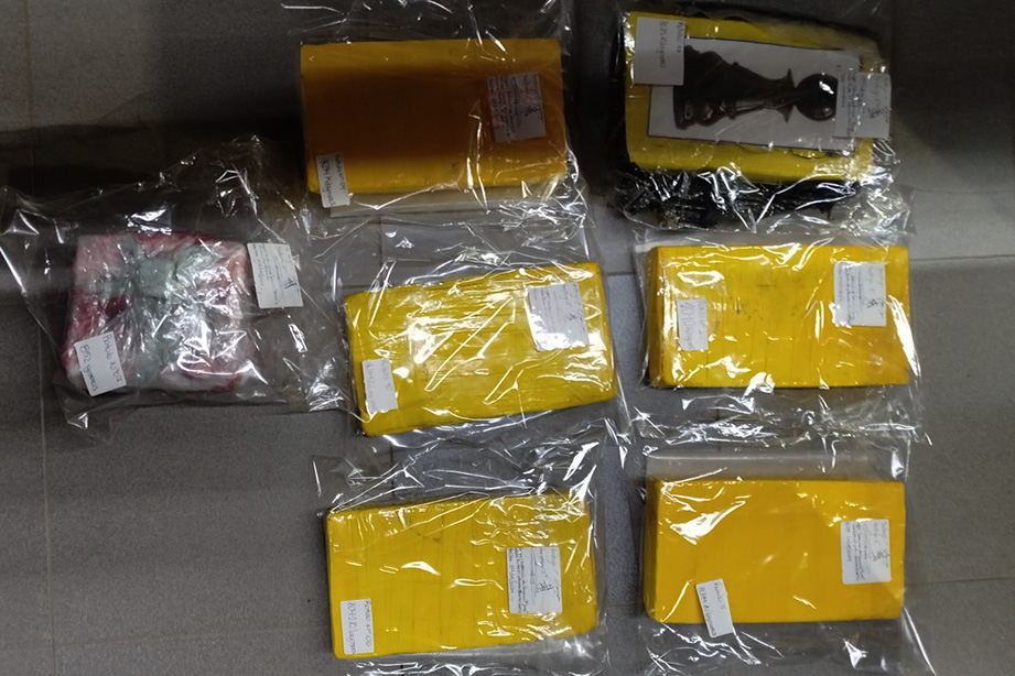 Luego, los efectivos policiales revisaron la valija que había sido despachada por Molina, en cuyo interior encontraron siete paquetes, con pesos individuales que variaban entre 1,075 kilogramos y 852 gramos, envueltos todos con cinta de embalar de color amarillo y con imágenes estampadas en bajorrelieve, una de ellas, con la figura de un peón de ajedrez, y las restantes, con el sello de un delfín. Los peritajes luego confirmaron que se trataba de clorhidrato de cocaína y que arrojaba un grado de pureza cercano al 80%.