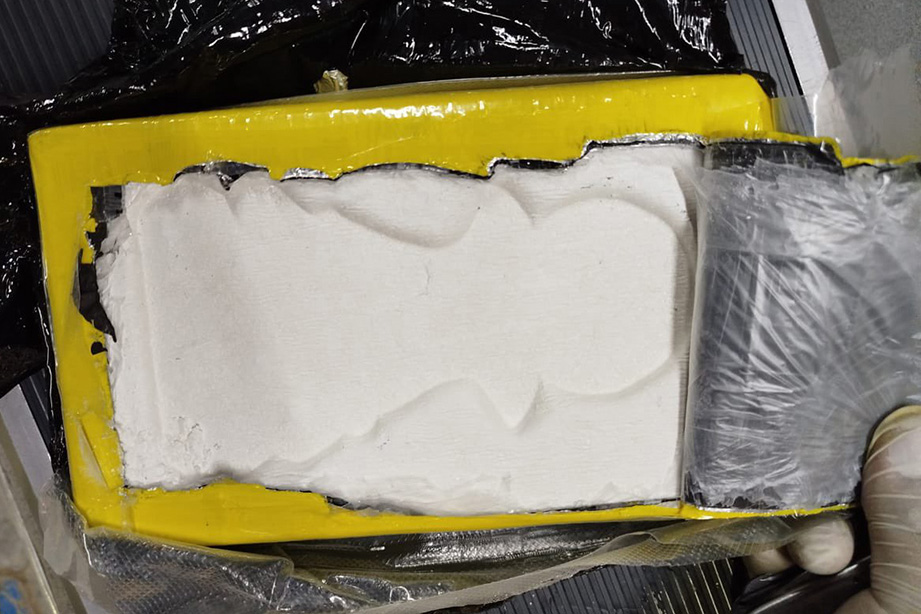 Luego, los efectivos policiales revisaron la valija que había sido despachada por Molina, en cuyo interior encontraron siete paquetes, con pesos individuales que variaban entre 1,075 kilogramos y 852 gramos, envueltos todos con cinta de embalar de color amarillo y con imágenes estampadas en bajorrelieve, una de ellas, con la figura de un peón de ajedrez, y las restantes, con el sello de un delfín. Los peritajes luego confirmaron que se trataba de clorhidrato de cocaína y que arrojaba un grado de pureza cercano al 80%.