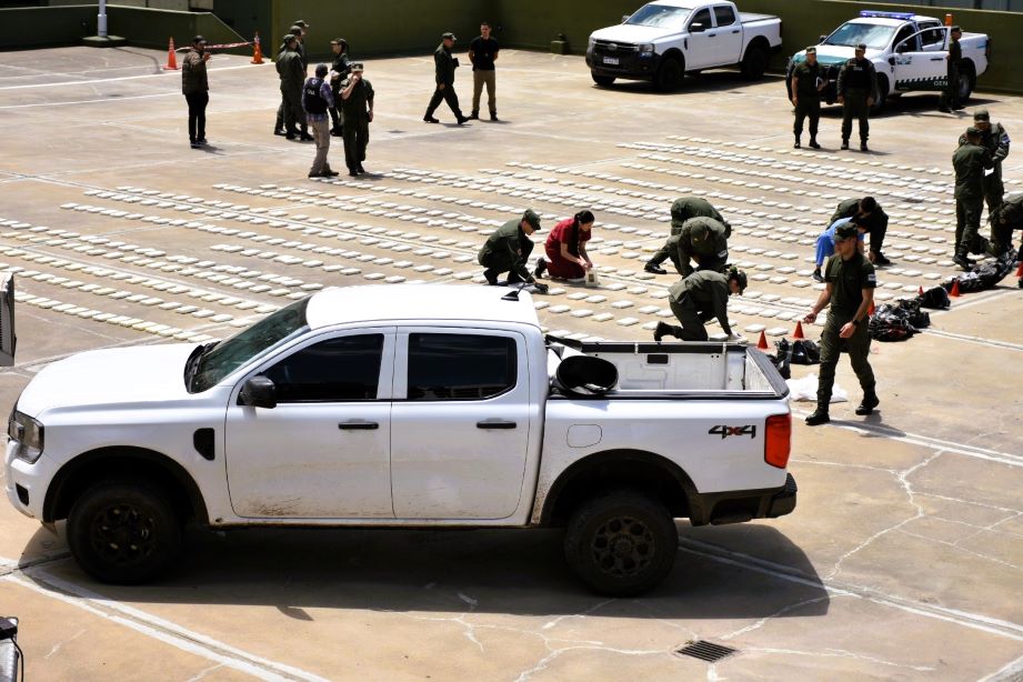 Los bolsones con casi una tonelada de cocaína hallados en la caja de la camioneta que conducía el detenido Brian Bilbao. Foto: PROCUNAR NEA