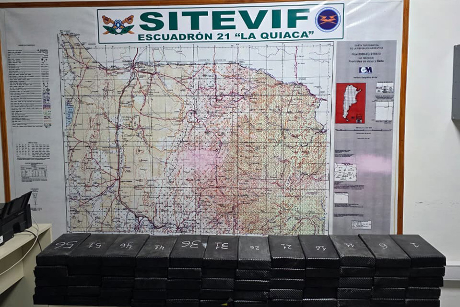 Los 60 kilos de cocaína incautados en abril de 2025 por el Sistema de Vigilancia Integrada de Fronteras (SITEVIF). Foto: Gendarmería Nacional