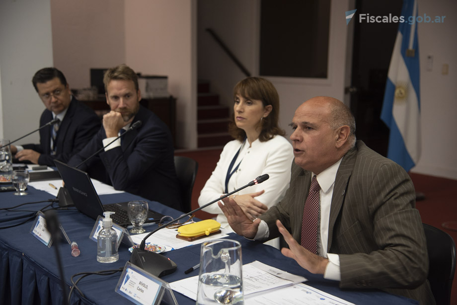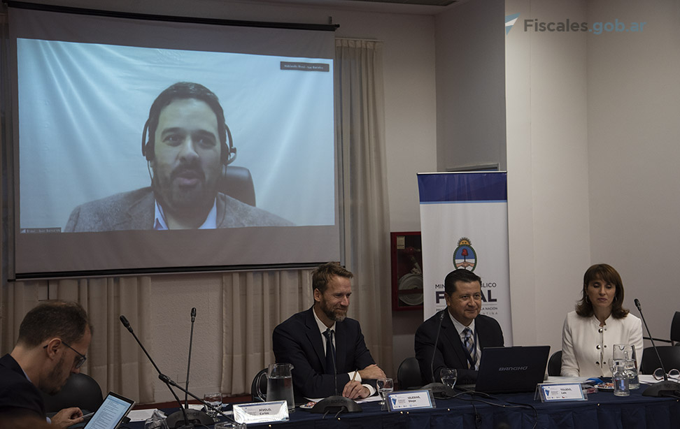 Contó con las exposiciones del director de la Unidad Especializada en Tráfico Ilícito de Estupefacientes y Sustancias Sicotrópicas de la Fiscalía Nacional del Ministerio Público Fiscal de Chile, Luis Toledo; el fiscal federal y presidente de la Asociación de Fiscales y Funcionarios del Ministerio Público Fiscal de la Nación (AFFUN), Carlos Rívolo; la titular de la Fiscalía Federal N° 2 de Lomas de Zamora, Cecilia Incardona; el procurador de la fiscalía de San Pablo, Brasil, Isac Barcelos Pereira de Souza; y la fiscal de la Dirección Nacional Antimafia y Antiterrorismo de Italia, Bárbara Sargenti. Rivolo e Incardona, junto a la Procuraduría de Narcocriminalidad (PROCUNAR), forman parte de la mesa de trabajo sobre narcocriminalidad en cárceles creada en el ámbito del MPF argentino por el procurador general de la Nación Interino, Eduardo Casal. El fiscal general Diego Velasco, que también la integra, estuvo presente en el panel.