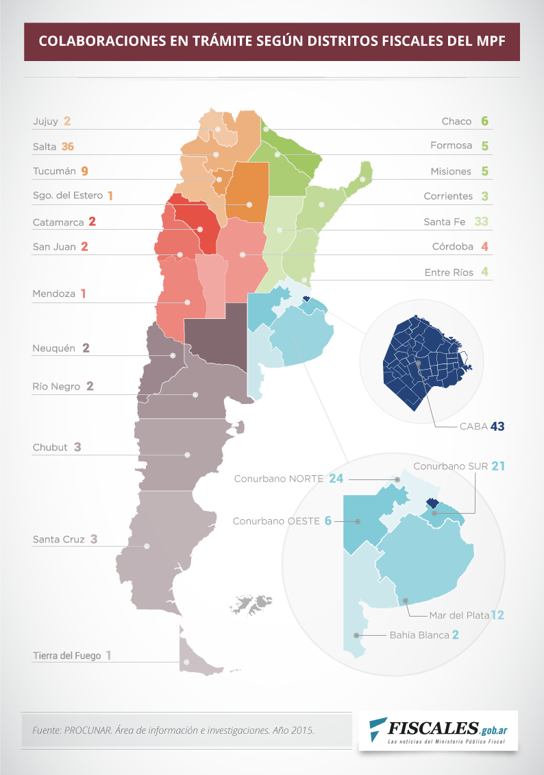 Desde su creación en febrero de 2013 y hasta fin de 2015, la Procuraduría de Narcocriminalidad (Procunar) apoyó la tarea de 82 fiscalías de distintas instancias, tomando intervención en un total de 231 causas de todo el país, 123 de las cuales se iniciaron en el año 2015. La Procunar, a cargo del fiscal federal Diego Iglesias, es el organismo especializado que asiste a las fiscalías nacionales y federales en la persecución de los delitos vinculados al narcotráfico y sus delitos conexos (como homicidios, lavado de dinero, entre otros) y dio cuenta de esos datos en el informe de gestión 2015, donde recorre las principales estadísticas de su actuación y traza un plan de trabajo para este año.